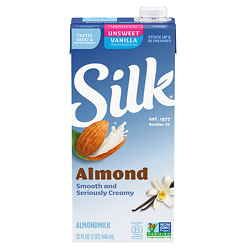 Bring the creamy goodness of almondmilk to your pantry with Silk Shelf-Stable Unsweetened Vanilla Almondmilk. Featuring a delicate vanilla taste and just 30 calories per serving, this unsweetened almondmilk is delicious whether it’s poured over cereal, added to your favorite recipes, or enjoyed straight out of the glass. It makes a perfect non-dairy alternative to milk, and is totally free of dairy, soy, lactose, gluten, casein, egg, and MSG. Silk Almondmilk provides vitamin E and contains 50% more calcium than dairy milk.* And since it comes in special, shelf-stable packaging, this unsweetened vanilla nutmilk will keep fresh at room temperature, unopened, until the date code: no refrigeration necessary!